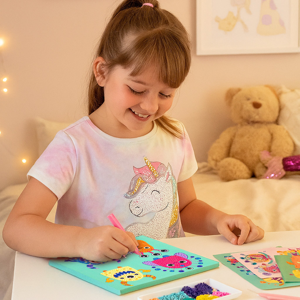 A gyémántszemes kirakás segíti a koncentrációt, a finommotoros mozgások fejlődését és a türelem gyakorlását. A folyamat közben fokozatosan alakul ki a csillogó, színes kép, amely sikerélményt ad minden elkészült részlettel.