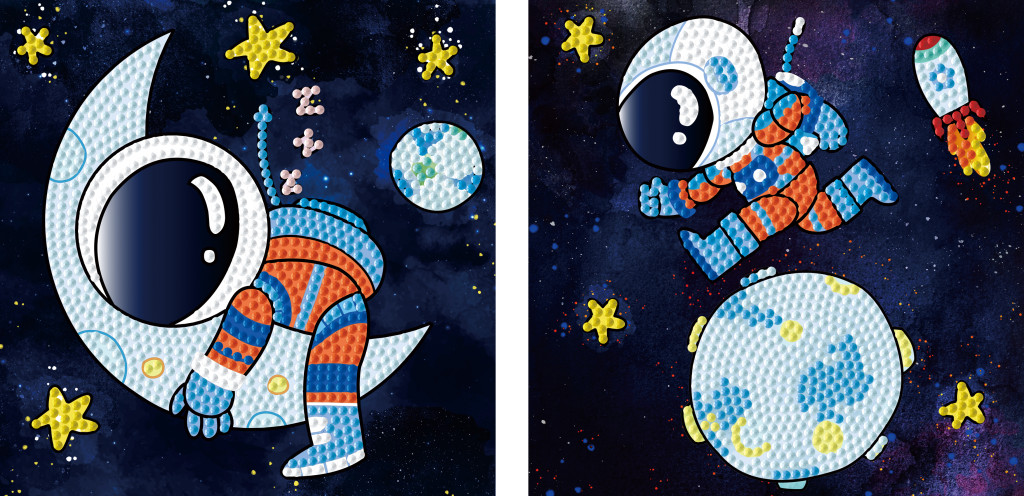 A készlet 2 darab képet tartalmaz, amelyek együtt egy egységes, űr témájú jelenetet alkotnak. A képek külön-külön is elkészíthetők, majd együtt egy látványos végeredményt adnak.