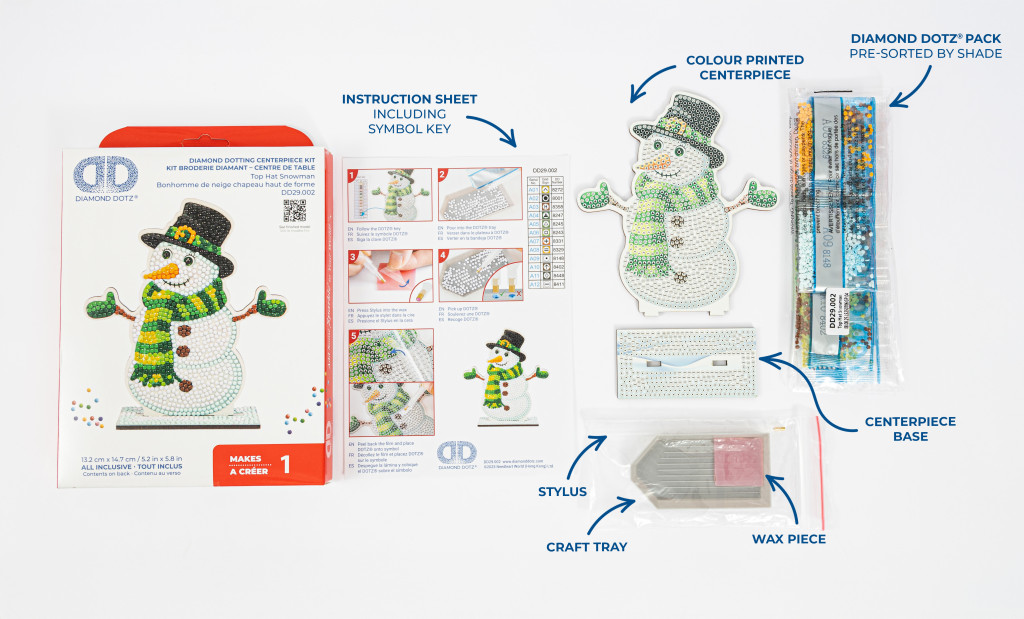 A Diamond Dotz hóemberes karácsonyi dísz kreatív és látványos ünnepi alkotás, amely több mint 1200 gyönggyel készíthető el. A csillogó végeredmény dekorációként is szépen mutat az otthonban.
