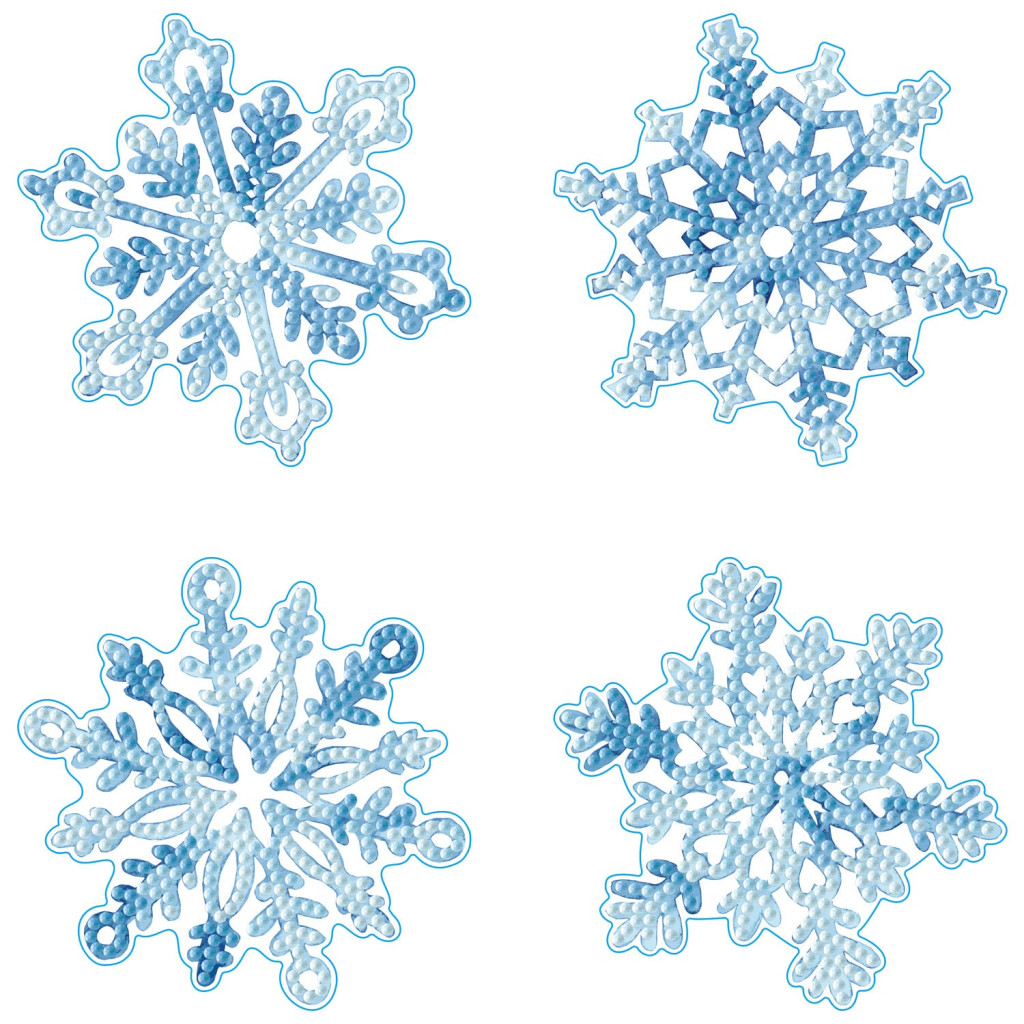A Diamond Dotz Snowflakes poháralátét szett a téli időszak hangulatát idézi meg négy különböző hópehely mintával. A készlet segítségével látványos, csillogó felületű poháralátétek készíthetők, amelyek dekoratív kiegészítői lehetnek az otthonnak.