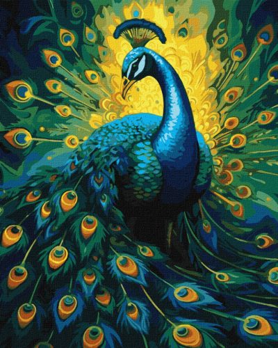 Az Ideyka Festés számok szerint – Fenséges páva (40×50 cm) kreatív készlet segít egy részletgazdag, elegáns pávát ábrázoló festmény elkészítésében.