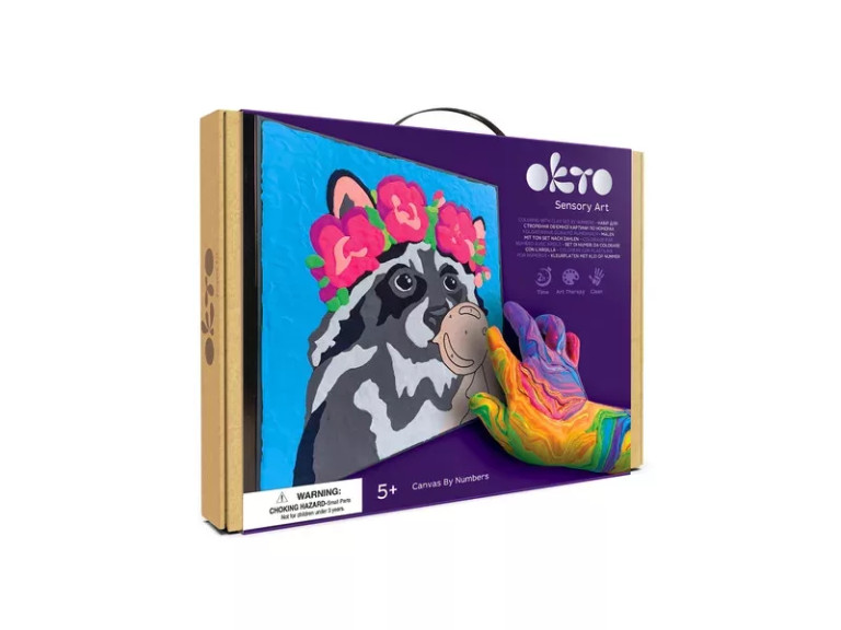 Az Okto Sensory Art Kids kreatív gyurma szettek a jól ismert „festés számok szerint” játékok mintájára készültek, azzal a különbséggel, hogy itt a kép gyurma felhasználásával készül el. A Mosómaci készlet segítségével a gyerekek egy színes, térhatású képet alkothatnak meg lépésről lépésre.