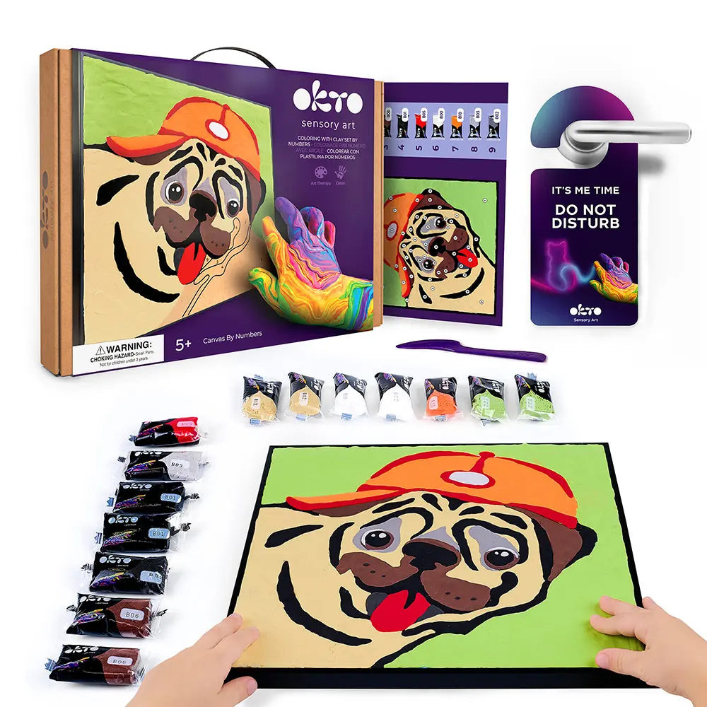 Az Okto Sensory Art Kids – Mopsz készlet egy vidám, kutyás témájú kreatív alkotókészlet, amely lehetőséget ad a gyerekeknek, hogy saját képet készítsenek egy kedves mopsz motívummal. Az alkotás során a gyerekek játékos módon fedezhetik fel a színek és formák világát.