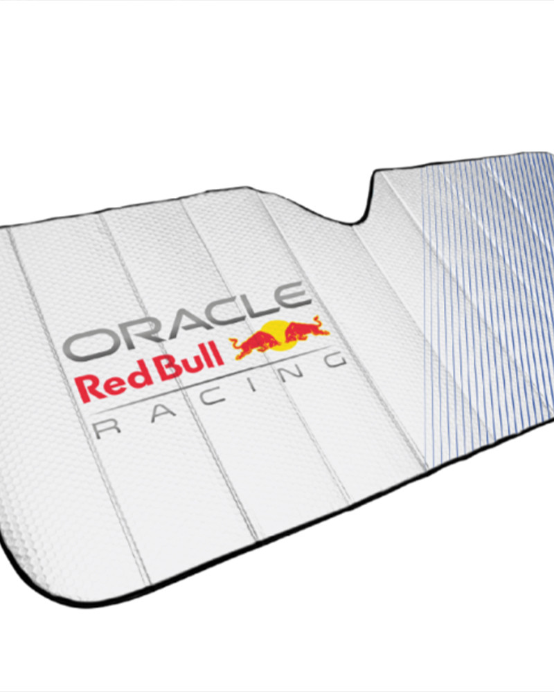 A szürke színű, Red Bull mintával ellátott napvédő modern és dinamikus stílust kölcsönöz az autó belső terének.